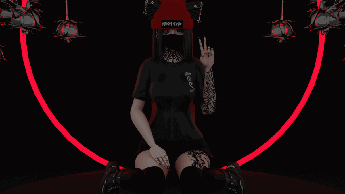 Body (RP Base) and Head (Savi Head) by zinpia (Heavy Edited No Re-Use)| Face Text and Scars by sivka. (My Edit do not re-use)| Tattoos by _lunii| Eye text by mowsterowo| DPS by Raliv| DPS Setup by Fluff| Index Gestures by Milkers~#4457| Long and Short Hair by saikura| Long PonyTails by saikura| Boots byItz.Q| Slip-on Shoes by nippnipp| Undies by Shizuki#6665| Bra 1 [TK.] by nauuki| PL Pants and Top by nauuki| Oversized Shirt (Nitro) by Wiliem| Skirt by meowmi| Tech Gothic Outfit by Vinuzhka| Shorts by Suumi| Leg Acc by nauuki| Simple Rings miyu#2959| Face Mask by -cinbun#8353| Beanie by KOLD.| Piercings by Xero| FluffyTail by KuudereKitten| Cat Ears by Boo| Husky Set by zinpia| Render Scene for GIF by teacakezz| Thigh Highs by me