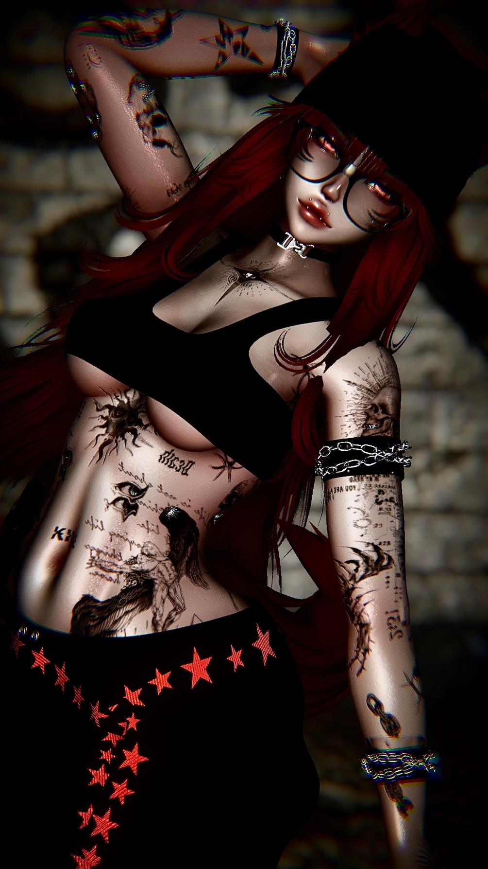Beanie, Heart chain, Leash Extension, Arm Chains/Bands, Mouth "wrap", Thigh Highs, Baggy Pants, Jeans, Shorts, Bra, Pasties, Bodysuit, Heels, Crop Top, Halter Top, Mini Top, Baggy TShirt, Jacket, Nail rings by Me (toska)