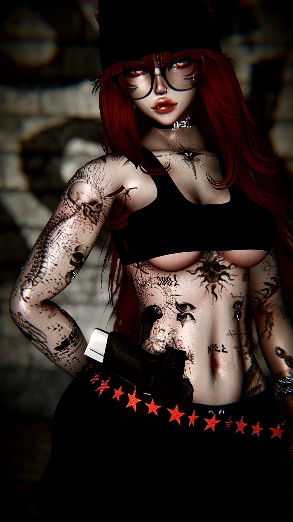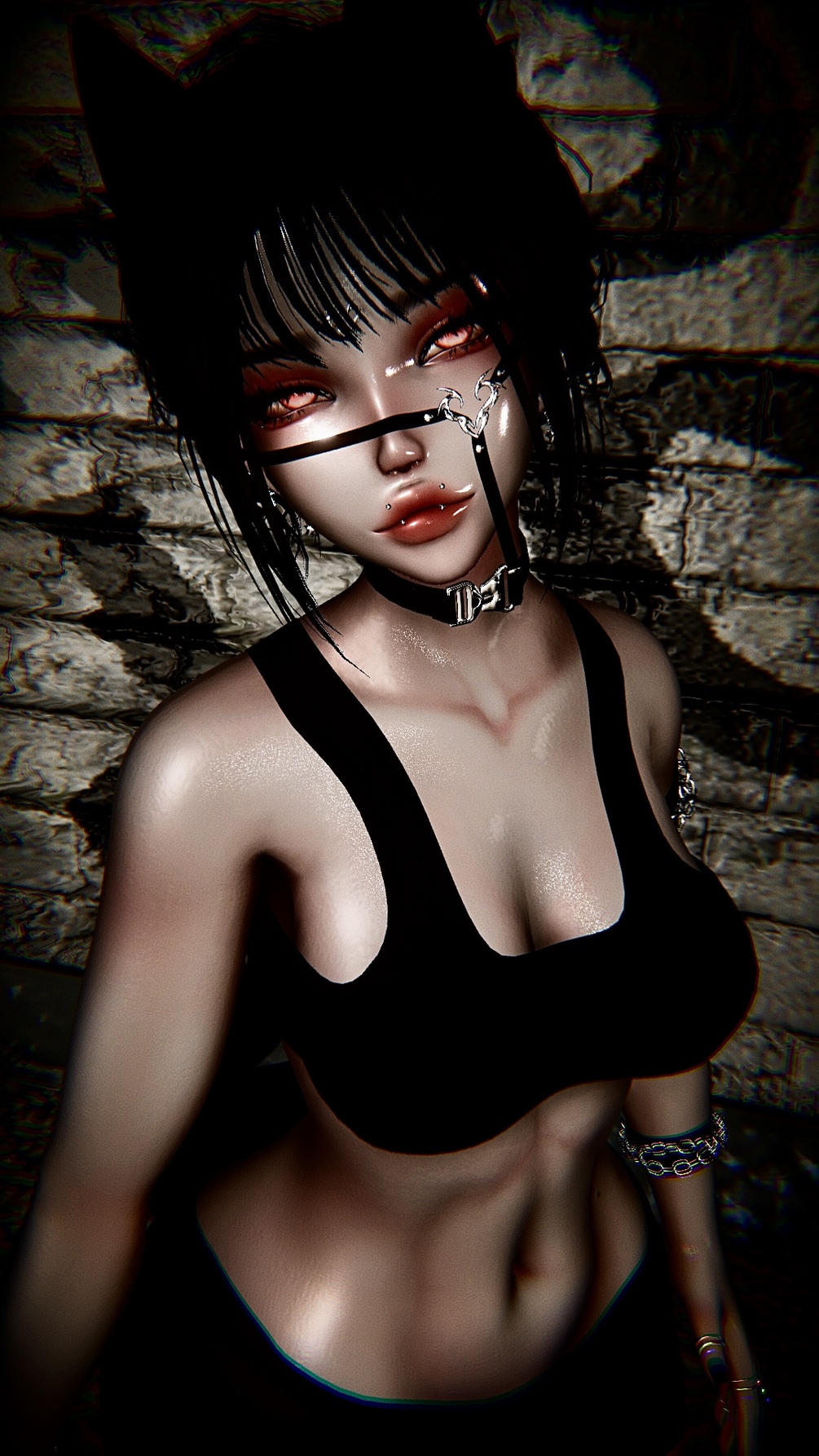 Beanie, Heart chain, Leash Extension, Arm Chains/Bands, Mouth "wrap", Thigh Highs, Baggy Pants, Jeans, Shorts, Bra, Pasties, Bodysuit, Heels, Crop Top, Halter Top, Mini Top, Baggy TShirt, Jacket, Nail rings by Me (toska)